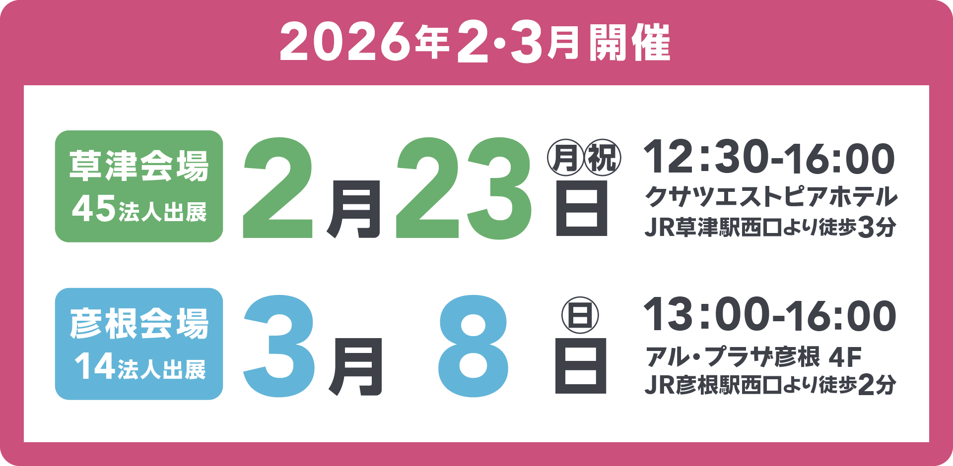 1.福祉事業(高齢・障害・児童の各分野)を展開する法人が集結! 2.福祉職場で活躍する職員と直接話してリアルな仕事を実感できる! 3.普段着OK。カジュアルな雰囲気で、楽しく、じっくり話せる!